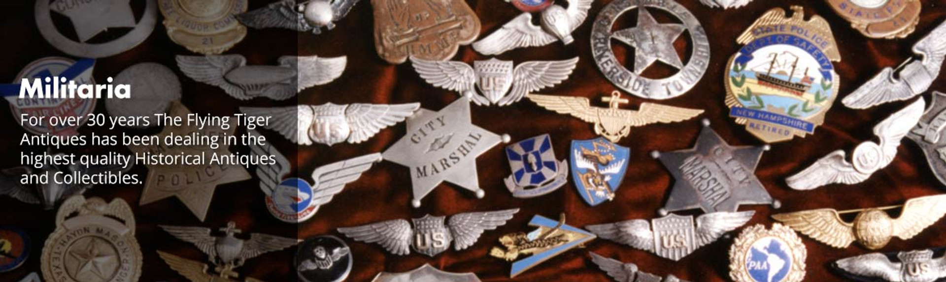 We feel that Flying Tiger Antiques offers the finest in Historical Artifacts and we hope you enjoy perusing our online catalog, and that you can find something here to add to your collection. We look forward to helping old clients and new in their collecting pursuits.